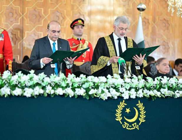 ایوان صدر میں ہونے والی تقریب میں چیف جسٹس پاکستان قاضی فائز عیسیٰ نے ان سے حلف لیا۔